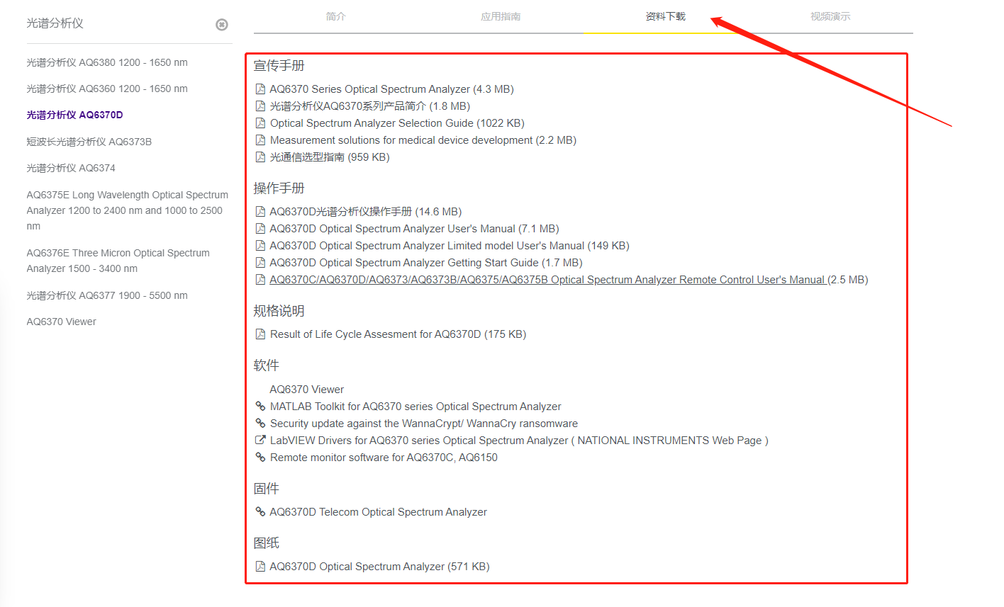 三、進入產(chǎn)品詳情頁面,點擊“下載技術(shù)資料”
