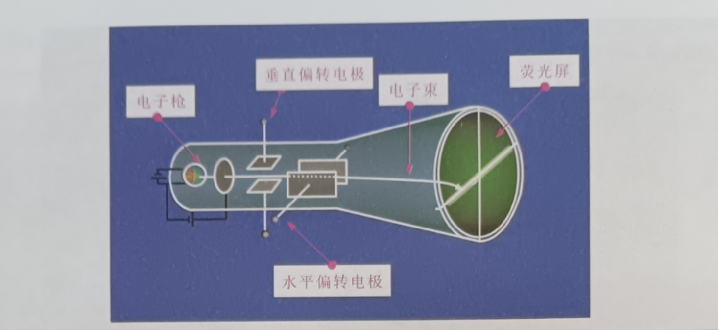波形變化時(shí),就可以在示波管上呈現(xiàn)出信號(hào)的波形。從圖所示的結(jié)構(gòu)中可以看到示波管中設(shè)有兩組偏轉(zhuǎn)電極,一組水平設(shè)置,另一組垂直設(shè)置。掃描振蕩電路產(chǎn)生鋸齒波信號(hào)加到垂直偏轉(zhuǎn)極板上,電子束在鋸齒波電壓的作用下上下移動(dòng),將測(cè)量的信號(hào)作為輸入信號(hào)加到水平偏轉(zhuǎn)極板上,電子束就會(huì)按照信號(hào)的波形左右變化,使?jié)M形信號(hào)顯示在示波管的屏幕上。