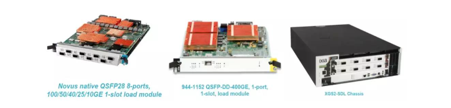 Keysight是德科技的數(shù)據(jù)測試儀表通過測試儀機框插入測試業(yè)務板卡的方式完成組裝,并根據(jù)插入的不同測試業(yè)務板卡提供不同的測試能力。Novus測試業(yè)務板卡提供QSFP28接口,K400測試業(yè)務卡提供QSFP_DD測試接口。