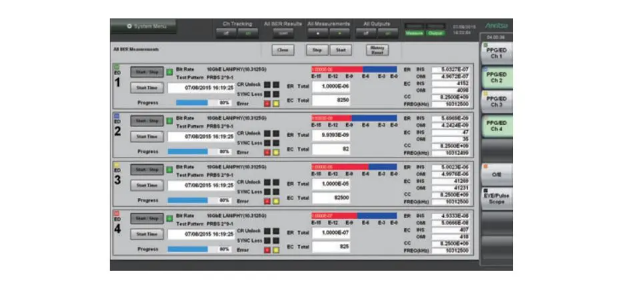 此外,BERTS可擴(kuò)展至4英寸,從而支持所有QSFP+模塊通道的同步錯(cuò)誤測(cè)量,由于耗時(shí)的通道切換操作已被取消,所以這能夠進(jìn)一步減少70%的測(cè)量時(shí)間。