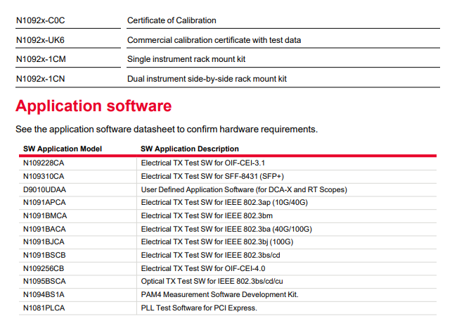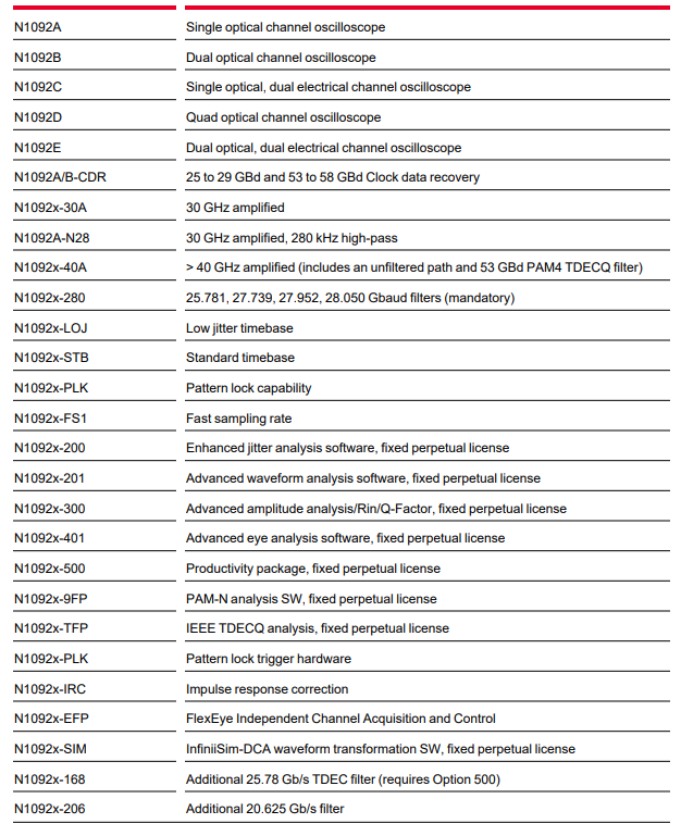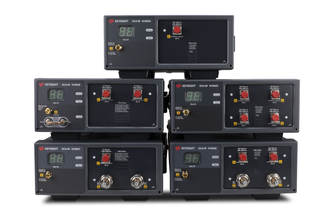 ?  N1092E:一款 DCA-M 采樣示波器,配有四個光通道和兩個電通道。N1092E 適用于驗證光發(fā)射機是否符合通信標準。光通道帶寬為 >40 GHz(選件 40A)、電通道帶寬為 50 GHz。