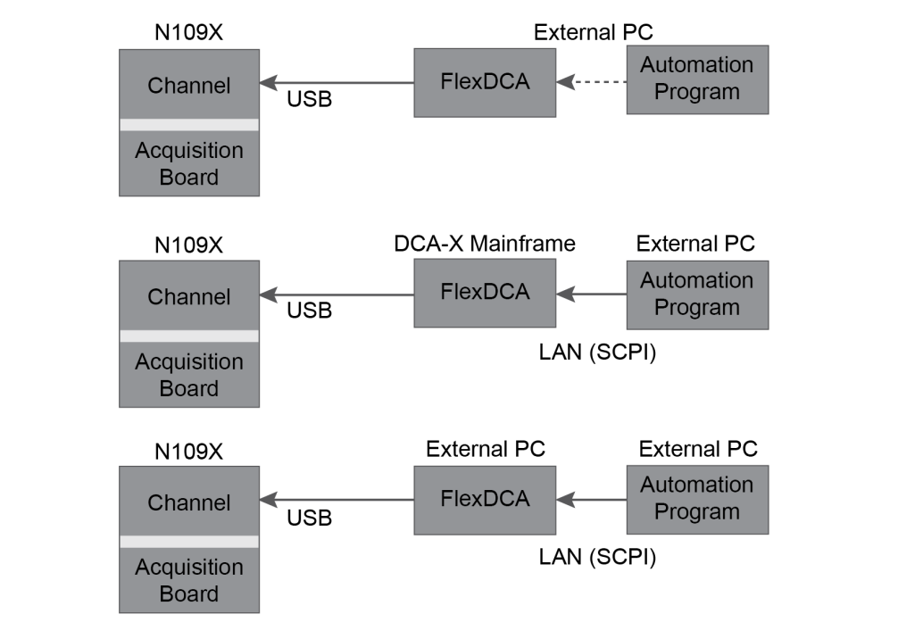 ?  FlexDCA 遠程接口軟件:這是一款可以遠程控制 N1090A 系列的軟件,可以通過 LAN、GPIB 或 USB 等接口來連接 PC 和示波器 。