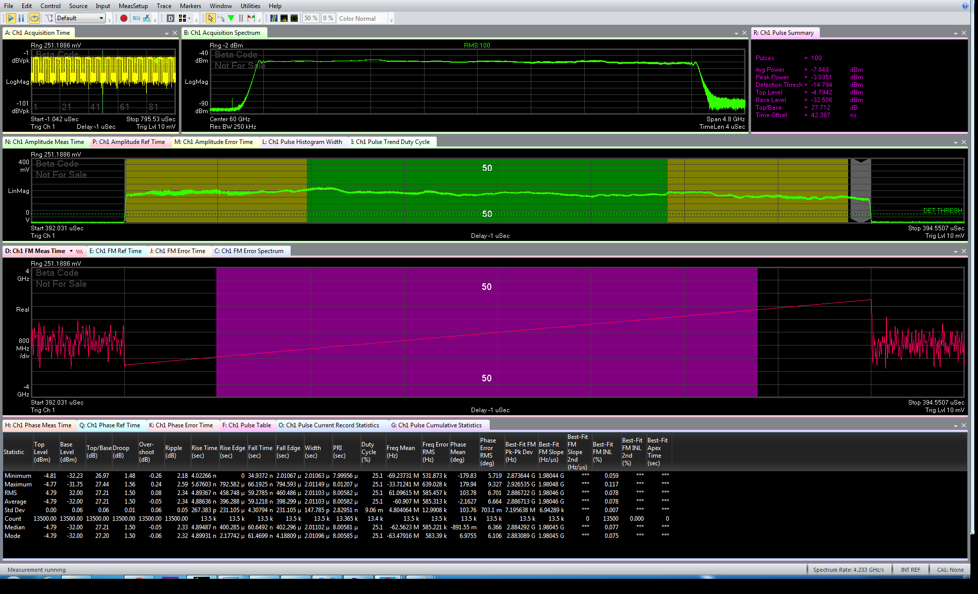 使用 VSA 89600 軟件選項(xiàng) BHQ 進(jìn)行 4GHz 寬 2 微秒 LFM 線性調(diào)頻毫米波統(tǒng)計(jì)分析: