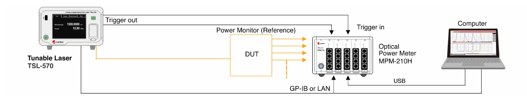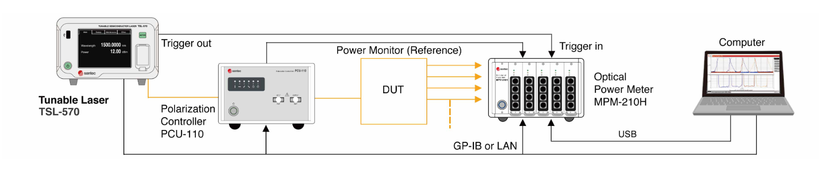 ?  高性能可調(diào)諧激光器TSL-570:該激光器是Santec的新品,具有高精度、高分辨率、高速的特點,可用于WDL測試。該激光器可以和Santec的光功率計、光開關、偏振控制器無縫搭配,為WDL和PDL測試提供完整的解決方案