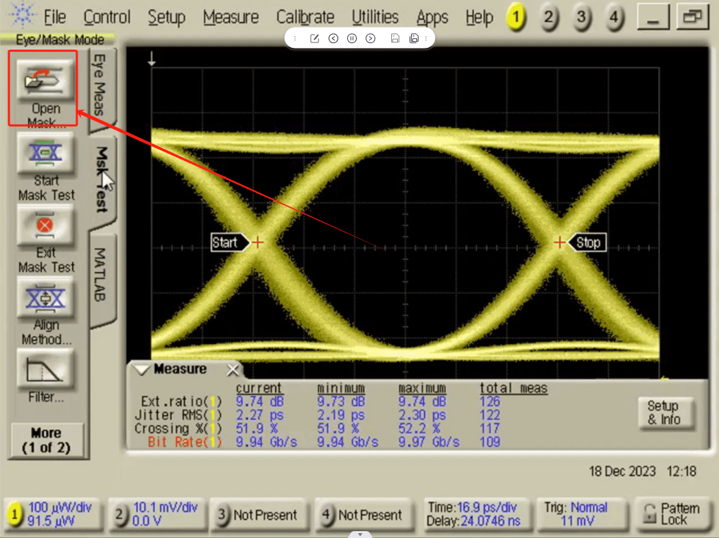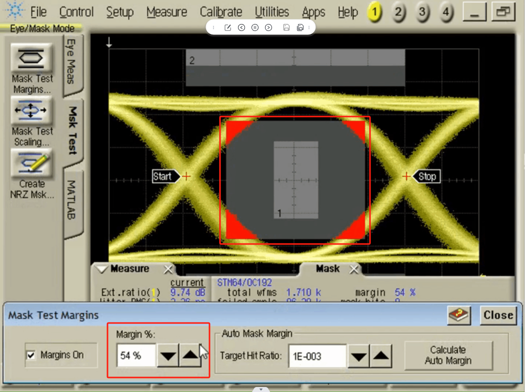 8.調(diào)整確認(rèn)后,點(diǎn)擊“close”,查看眼圖參數(shù)