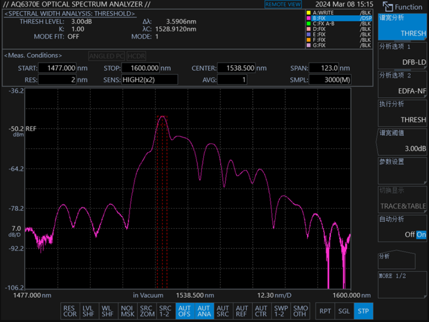 一般情況下,橫河OSA的自動分析設(shè)置默認(rèn)為關(guān)閉狀態(tài),用戶需在完成光譜掃描后點擊相應(yīng)分析功能方可執(zhí)行分析操作;待開啟自動分析功能后,設(shè)備將在每次掃描完成后執(zhí)行分析,并將分析結(jié)果呈現(xiàn)至屏幕上方。