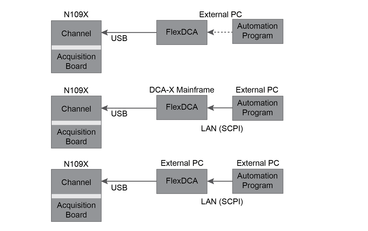 3. 也可以用USB線將86100D或N1000A主機連接到N1092A/B/C/D/E。主機可以通過GPIB或其他方式控制,然后可以通過GPIB或LAN控制主機。