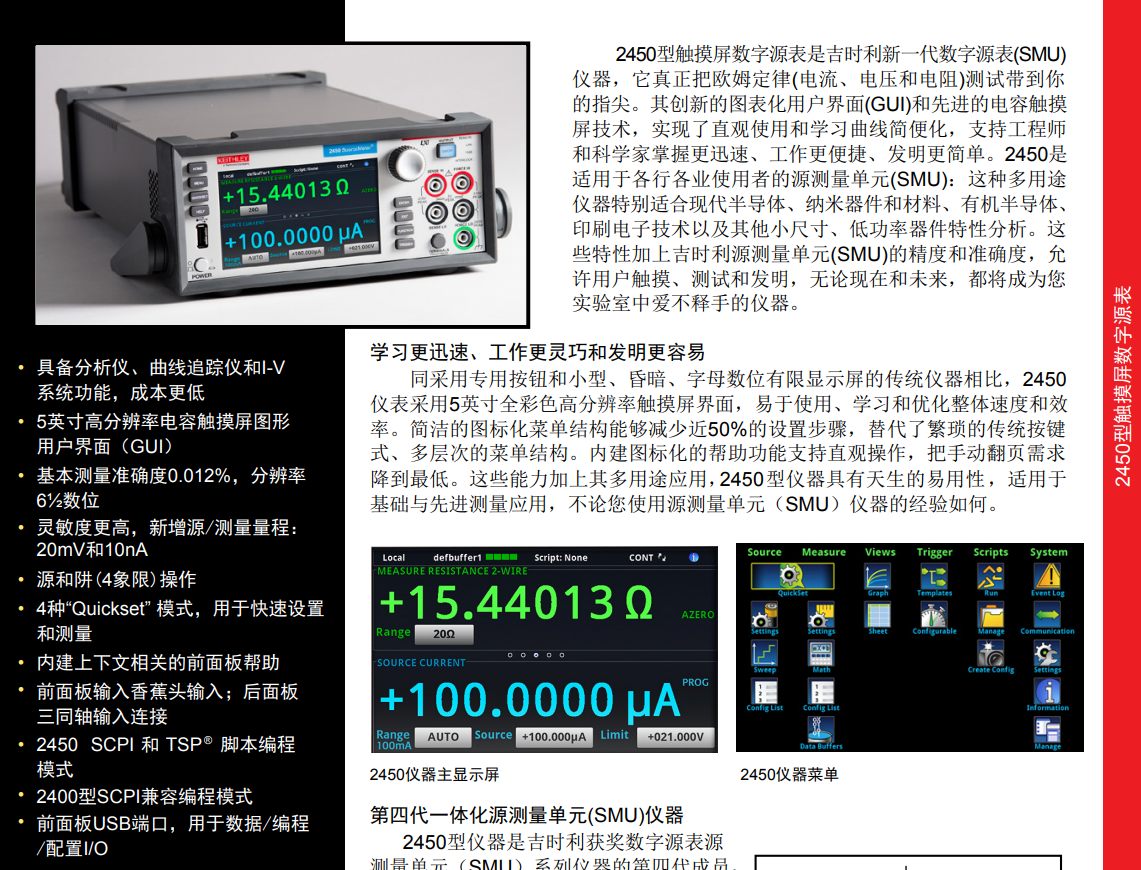 吉時利2400與2450的主要區(qū)別在于操作界面、測量范圍和基本精度。: