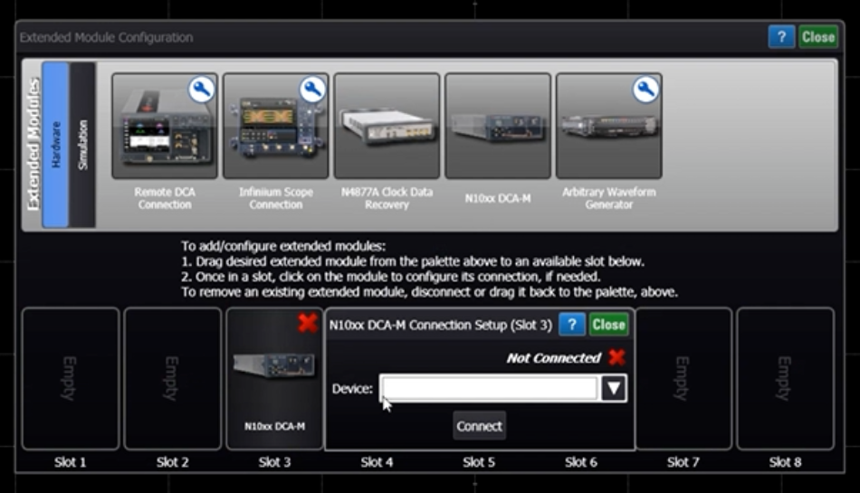 如果需要切換槽位,您可以先斷開當(dāng)前槽位(2),然后將其重新拉到另一個槽位(3),這時儀器面板上的顯示窗口槽位數(shù)字也會相應(yīng)變化。