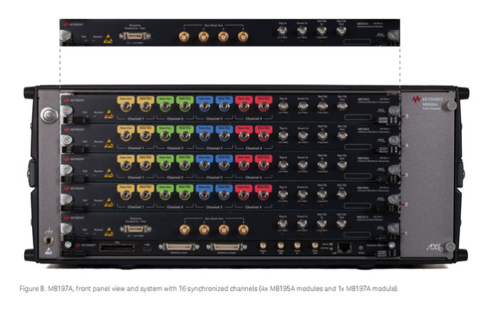 • 高通道密度:每個模塊提供 1、2 或 4 個通道,使用 M8197A 多通道同步模塊,可以同步 4 個模塊上多達 16 個通道