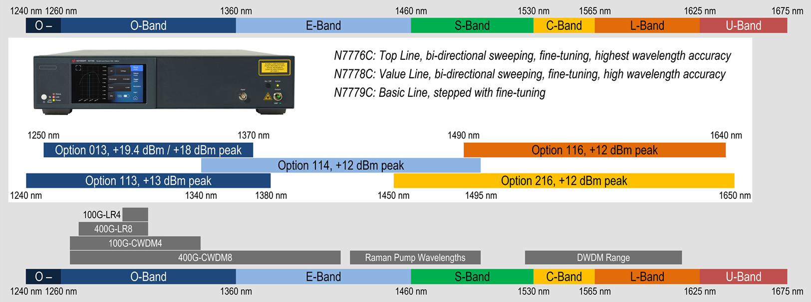 N7776C 在產(chǎn)品系列最低的自發(fā)發(fā)射水平下具有超過 +12 dBm 的輸出功率,能夠驗(yàn)證極深的濾波器。它還提供最佳的波長(zhǎng)精度 - 通過其高分辨率波長(zhǎng)參考單元實(shí)現(xiàn),該單元提供實(shí)時(shí)跟蹤和控制,并包括一個(gè)氣體池,具有出色的長(zhǎng)期穩(wěn)定性和自調(diào)節(jié)能力。