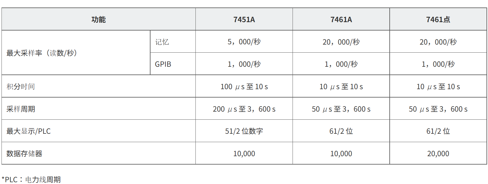 ? 可變積分時間:10 μs 至 10 s (7461A/7461P) 100 μs 至 10 s (7451A)