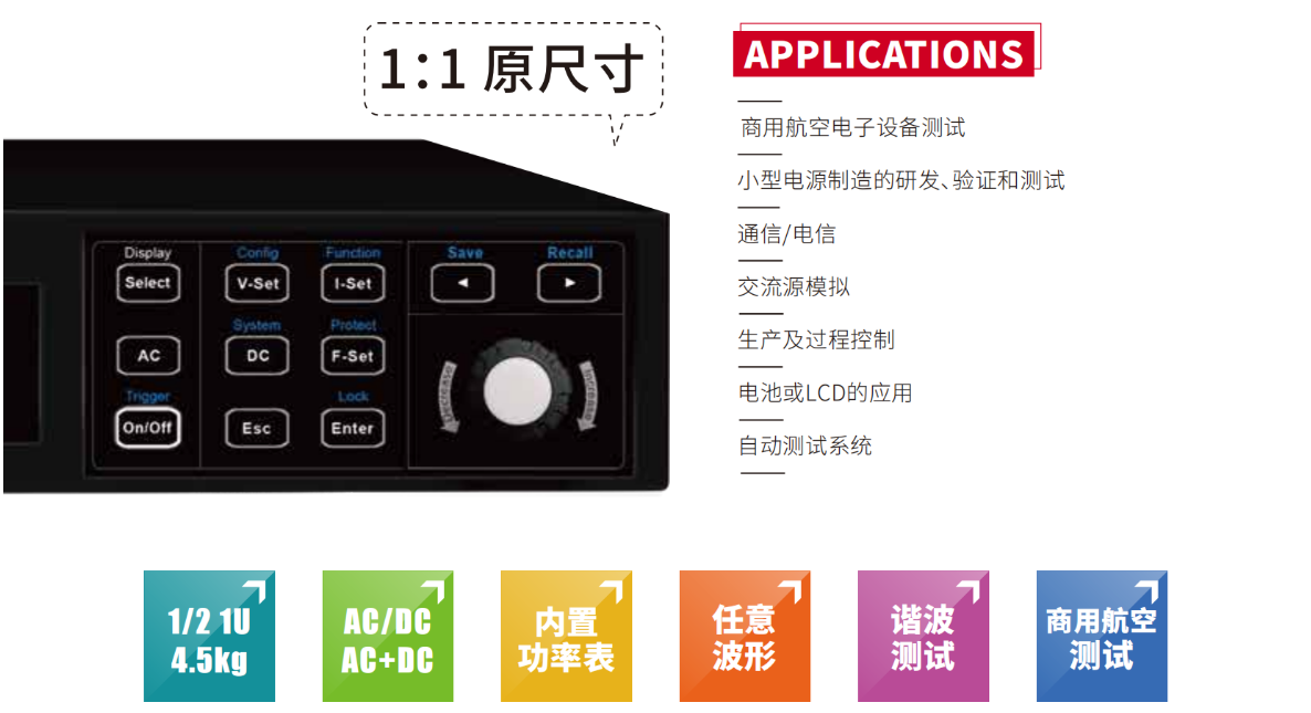 IT-M7700系列高性能可編程交流電源很好地結(jié)合了智能和靈活兩大特點(diǎn),改善了傳統(tǒng)交流電源體積龐大的缺陷,將體積縮小到僅? 1U,很好的增加空間利用率。內(nèi)置功率表和任意波型產(chǎn)生器, 可模擬各種任意波形輸出。結(jié)合了可編程AC和DC電源的先進(jìn)技術(shù),廣泛應(yīng)用于電力能源產(chǎn)品、3C產(chǎn)品、家電產(chǎn)品、工業(yè)電子、IEC標(biāo)準(zhǔn)測試的開發(fā)和運(yùn)用等多個(gè)領(lǐng)域。